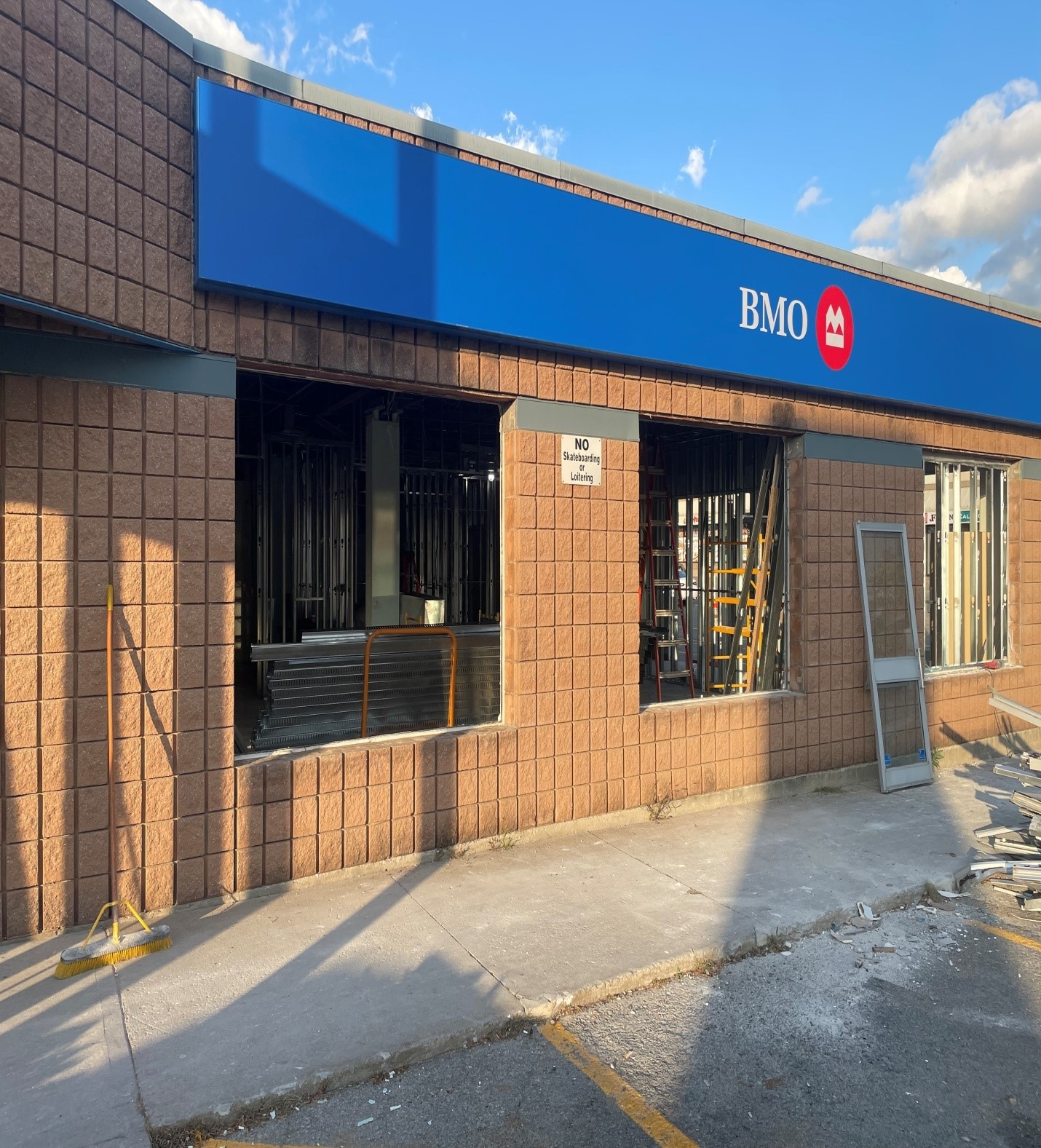 Demolition services were successfully completed at the BMO Bank site as part of a broader redevelopment initiative. The scope of work included the safe and systematic dismantling of existing structural elements, including interior walls, ceilings, flooring, and non-load-bearing partitions. All materials were removed in compliance with local regulations and environmental standards.